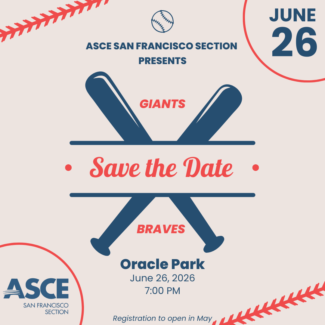 Join the ASCE San Francisco Section for their annual Night at the Ballpark. This event is open to ASCE members, family and friends. Date: Friday, June 26, 2026 Time: 7:00PM Location: Oracle Park 24 Willie Mays Plaza, San Francisco, CA 94107 Registration details coming soon. |